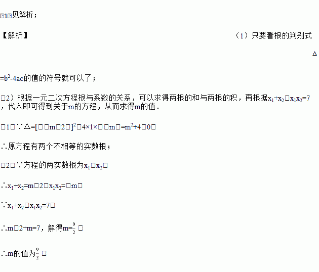 (2)如果方程的两实数根为x1,x2,且x1+x2﹣x1x2=7,求m的值.