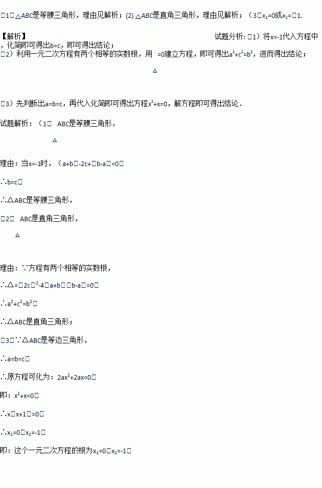 已知关于x的一元二次方程(a+b)x2+2cx+(b-a)=0,其中a、b、c分别为