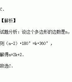 如果多边形的内角和是外角和的k倍,那么这个多边形的边数是( ).
