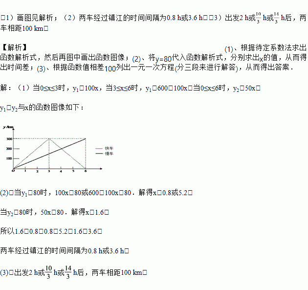 (2)若镇江、南京相距约80 km,求两车经过镇江的时间间隔;