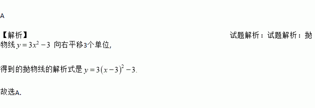 A 【解析】试题解析:试题解析:抛物线向右平移3个单位, 得到的抛物线的解析式是 故选A.