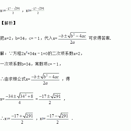 按要求解下列方程:2x2+34x﹣1=0(公式法).