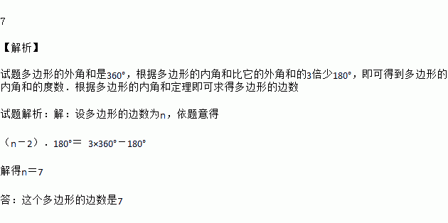 一个多边形的内角和比它的外角和的3倍少180°,求这个多边形的边数.