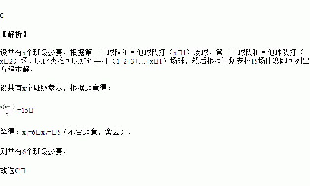某中学组织初三学生篮球比赛,以班为单位,每两班之间都比赛一场,计划安排15场比赛,则共有多少个班级参赛?( )