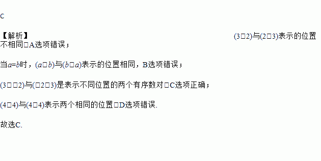 C. (3,-2)与(-2,3)是表示不同位置的两个有序数对