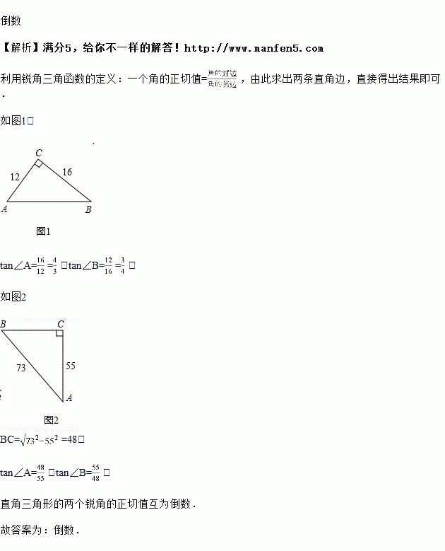 由上面的例子可以得出结论:直角三角形的两个锐角的正切值互为________.