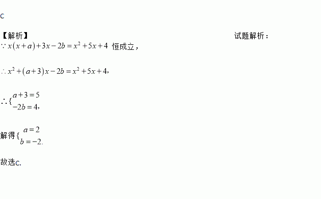 要使x(x+a)+3x-2b=x2+5x+4恒成立,则a,b的值分别是( )