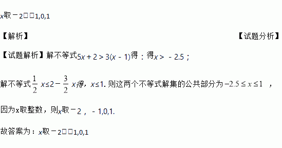 x取哪些整数值时,不等式5x+2>3(x-1)与x≤2-x都成立?