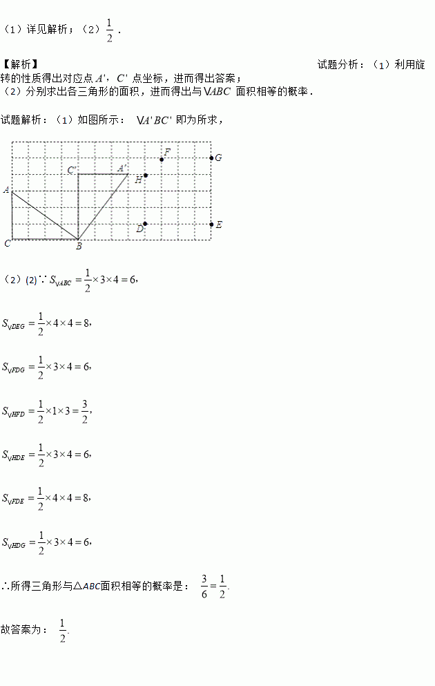 如图,在方格纸中,△ABC的三个顶点及D、E、F、G、H、五个点分别位于小正方形的顶点上.