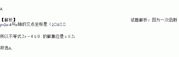 一次函数y=2x-4与x轴的交点坐标是(2,0),那么不等式2x-4≤0的解集应是( )