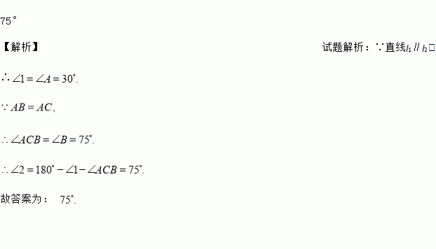 如图,直线m∥n,以直线m上的点A为圆心,适当长为半径画弧,分别交直线m,n于点B、C,连接AC、BC,若∠1=30°,则∠2=_____.