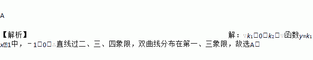 已知k1<0<k2,则函数y=k1x﹣1和y=的图象大致是( )