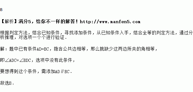 如图,AD=BC,要得到△ABD和△CDB全等,可以添加的条件是( )