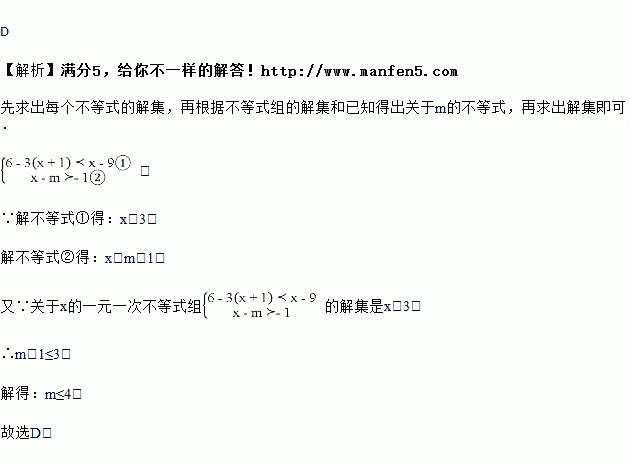 若关于x的一元一次不等式组的解集是x>3,则m的取值范围是( )