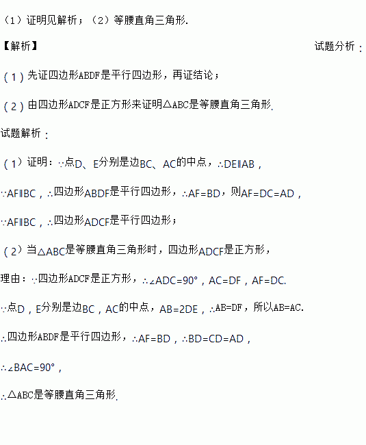 如图,在△ABC中,点D、E分别是边BC、AC的中点,过点A作AF∥BC交DE的延长线于F点,连接AD、CF.