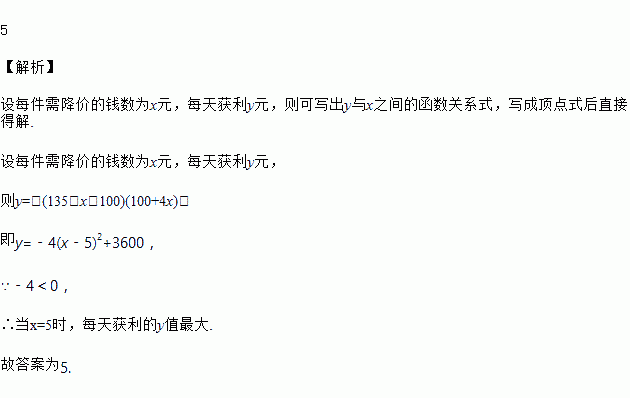 一件工艺品进价为100元,标价135元售出,每天可售出100件. 根据销售统计,一件工艺品每降价1元出售,则每天可多售出4件,要使每天获得的利润最大,每件需降价的钱数为_______元.