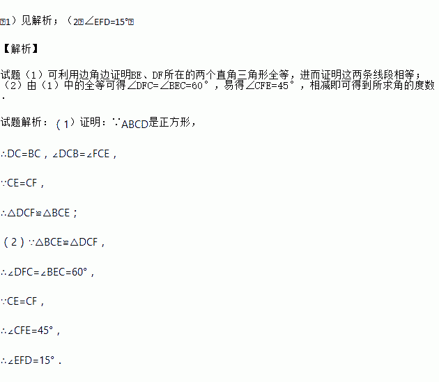 (1)求证:△BCE≌△DCF;