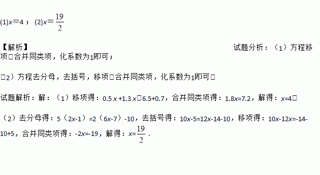 (1) 0.5 x -0.7=6.5-1.3 x; (2) ;