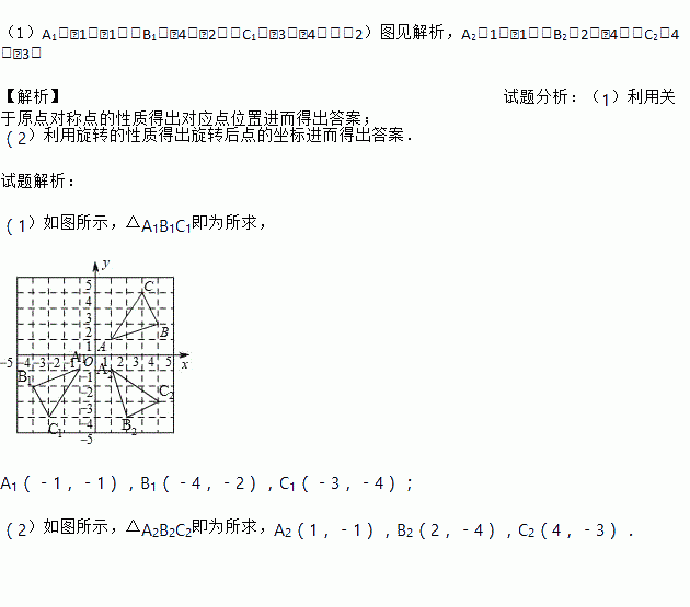 (1)请画出△ABC关于原点对称的△A1B1C1;并写出点A1,B1,C1的坐标.