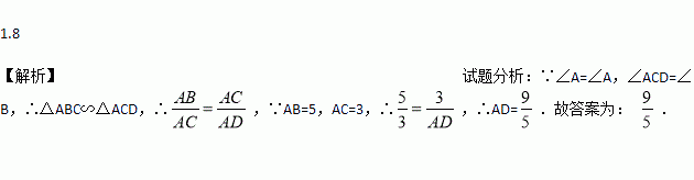 如图,已知△ABC中,AB=5,AC=3,点D在边AB上,且∠ACD=∠B,则线段AD的长为__.