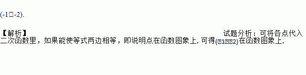 (-1,-2). 【解析】试题分析:可将各点代入二次函数里,如果能使等式两边相等,即说明点在函数图象上.可得(-1,-2)在函数图象上.