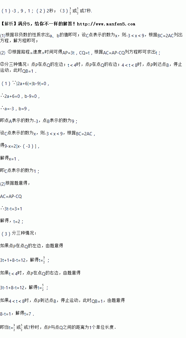 (2)若一动点P从点A出发,以3个单位长度/秒速度由A向B运动;同一时刻,另一动点Q从点C出发,以1个单位长度/秒速度由C向B运动,终点都为B点.当一点到达终点时,这点就停止运动,而另一点则继续运动,直至两点都到达终点时才结束整个运动过程.设点Q运动时间为t秒.