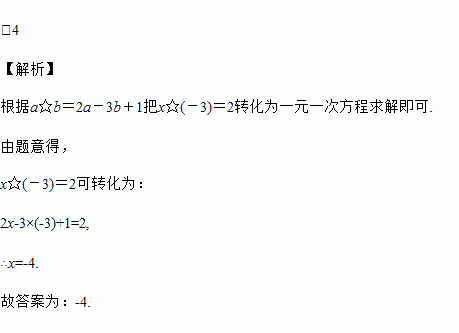 用“☆”定义一种新运算:对于任意实数a,b,都有a☆b=2a-3b+1.例如:2☆1=2×2-3×1+1.若x☆(-3)=2,则x=________.