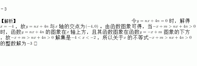 如图,直线y=﹣x+m与y=nx+4n(n≠0)的交点的横坐标为﹣2,则关于x的不等式﹣x+m>nx+4n>0的整数解是__________.