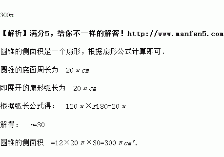 如果圆锥的底面周长为,侧面展开后所得的扇形的圆心角是,则该圆锥的侧面积是________(结果保留).