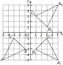 (2)以原点O为旋转中心,把△A1B1C1逆时针旋转90°,得到△A2B2C2