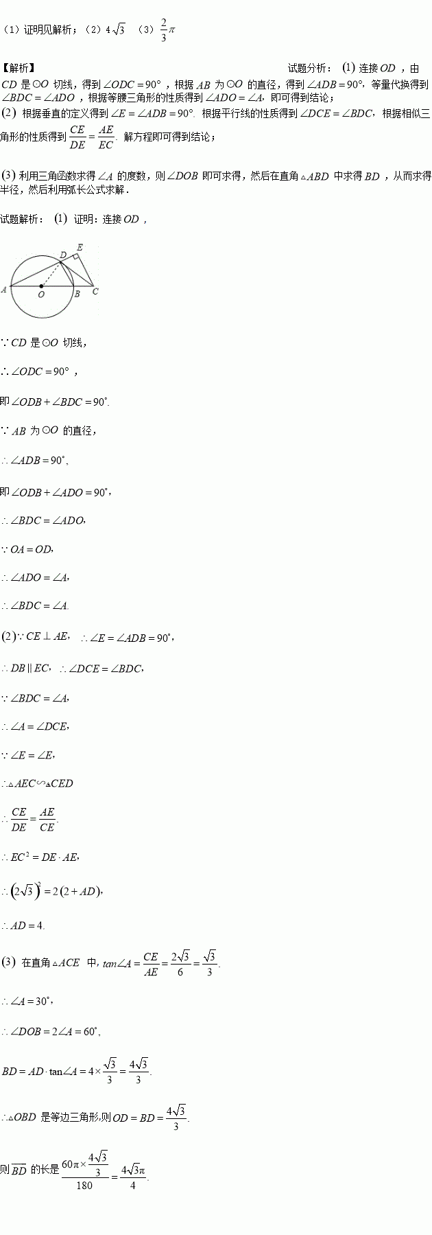 如图,AB是⊙O的直径,点C在AB的延长线上,CD与⊙O相切于点D,CE⊥AD,交AD的延长线于点E.