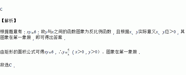 如果矩形的面积为,那么它的长与宽之间的函数关系用图象表示大致是( )