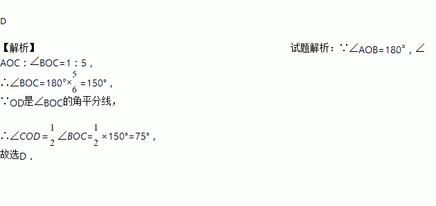 ∠AOB是平角,从点O引射线OC,使∠AOC:∠BOC=1:5,OD是∠BOC的角平分线,则∠C的度数是( )