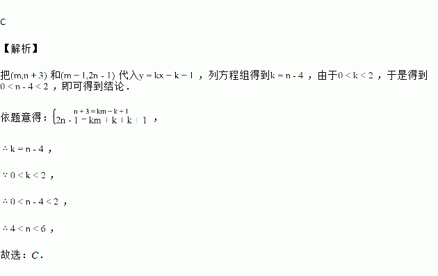 若直线y=kx+k+1经过点(m,n+3)和(m+1,2n-1),且0<k<2,则n的值可以是( )