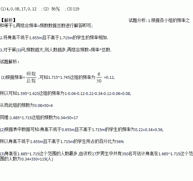 (2)估计这所学校17岁男生中,身高不低于1.655m且不高于1.715m的学生所占的百分比;