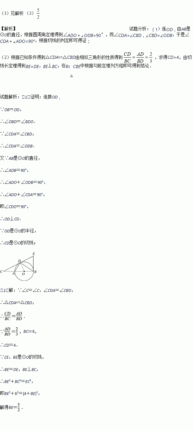 (1)求证:CD是⊙O的切线;