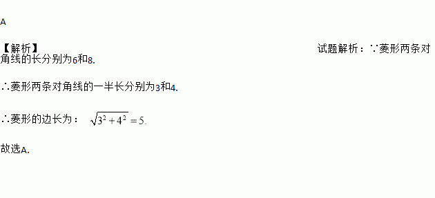 若菱形两条对角线的长分别为6和8,则这个菱形的边长为