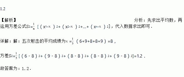 在一次射击训练中,某位选手五次射击的环数分别为6,9,8,8,9,则这位选手五次射击环数的方差为_____.
