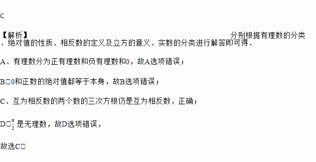 C. 互为相反数的两个数的三次方根仍是互为相反数