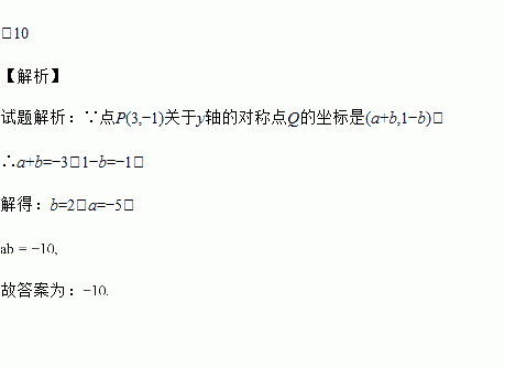已知点P(3,-1)关于y轴的对称点Q的坐标是(a+b,1-b),则ab的值为______.
