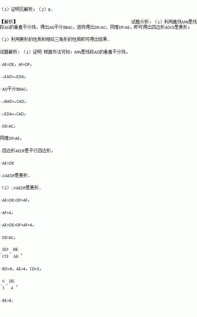 (1)求证:四边形AEDF是菱形;