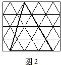 已知:如图,在正三角形网格中,每个小正三角形的面积是1,请你在图2中画出一个三角形,使三角形的面积是图1中阴影部分面积的一半.
