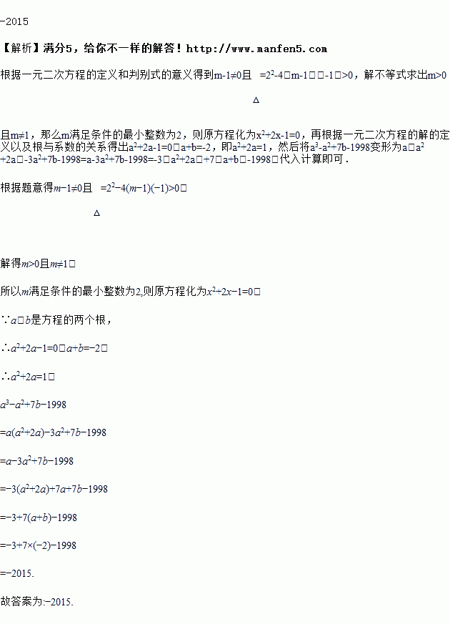 已知:,是关于的方程的两个不相等的实数根,当取最小整数时,则的值为________.