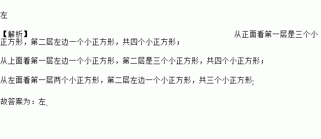 如图是由五个大小相同的正方体搭成的几何体,从_____面看所得到的图形面积最小.