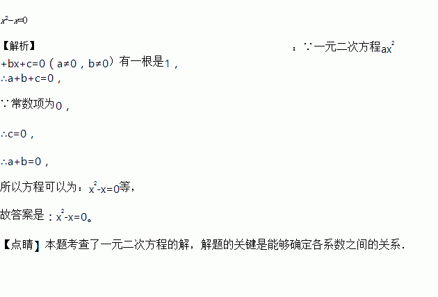 已知一元二次方程ax2+bx+c=0(a≠0,b≠0)有一根是1,常数项为0,那么这个一元二次方程可以是 ________(只写符合条件的一个即可)