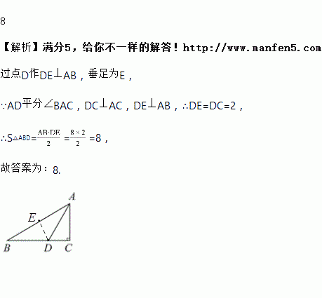 如图,在Rt△ABC中,∠C=90°,AB=8,AD平分∠BAC,交BC边于点D,若CD=2,则△ABD的面积为_______.