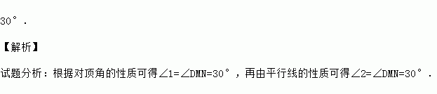 如图,直线CD∥BF,直线AB与CD、EF分别相交于点M、N,若∠1=30°,则∠2= .