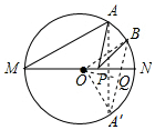 1.分析 过A作关于直线MN的对称点A′,连接A′B,由轴对称的性质可知A′B即为PA+PB的最小值,由对称的性质可知$\widehat{AN}$=$\widehat{A′N}$,再由圆周角定理可求出∠A′ON的度数,再由勾股定理即可求解.