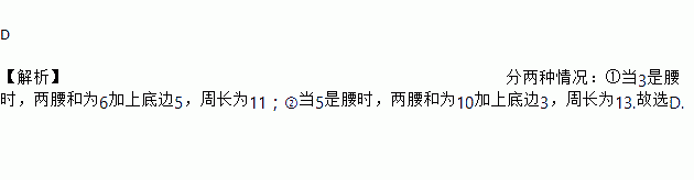 已知等腰三角形的两边长分别是3和5,则该三角形的周长是( )