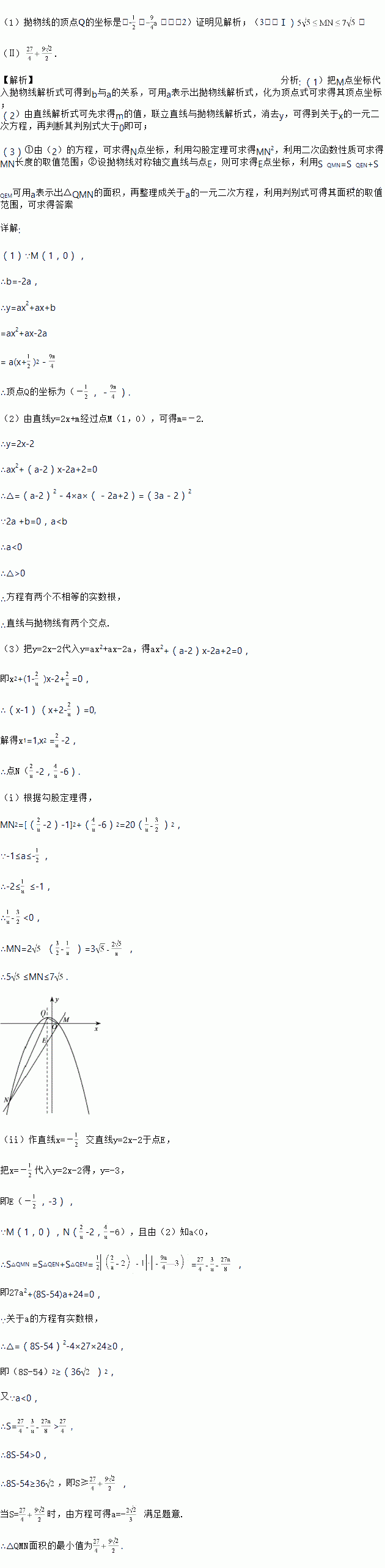 (1)求抛物线顶点Q的坐标(用含a的代数式表示);